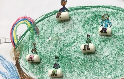 Bei unserer letzten Gruppenstunde standen die Jenseitsvorstellungen im Mittelpunkt. Wo ist Papa jetzt? Wie geht es Mama in "ihrem neuen Zuhause"? Intensiv tauschten wir uns aus und die Kinder stellten ihre Vorstellungen kreativ dar. Ein sehr tröstlicher Nachmittag, der den Kindern viel Kraft gab.